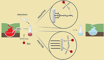 Organofunctionalized hydrated niobium oxide adsorbents interacting with anionic dye molecule by electrostatic interactions.