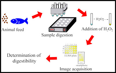 Digital images were used to measure TiO2 content as a digestibility marker, showing no statistical difference compared to UV-VIS spectrophotometry.