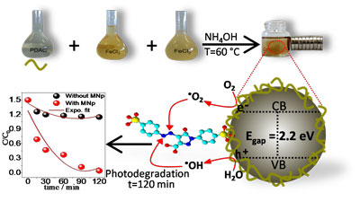 This work reports the synthesis of a magnetic nanohybrid, which plays a key role in photodegrading the yellow dye tartrazine.