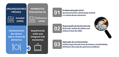 In this work, the discussion about the importance of salt in foods in chemistry classes in high school was based on the theory of meaningful learning, and the proposed practical method was developed using the three pedagogical moments.