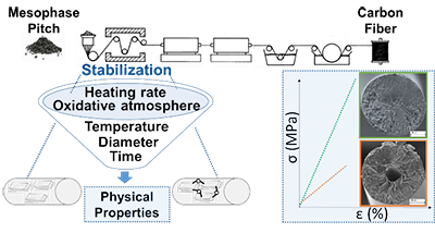 Among the fiber fabrication stages, stabilization turns pitch fiber into a thermoset material. The adequate conditions produce fibers with better physical properties