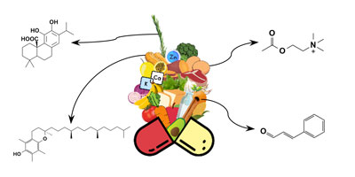 Foods provide macro and micronutrients, essential for the proper functioning of the body and made up of chemicals found in food supplements. Rosemary contains carnosic acid, walnuts vitamin E, eggs acetylcholine, and cinnamon cinnamaldehyde