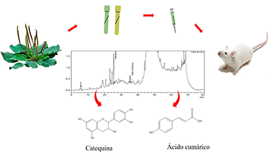 Extrato etanólico e hexânico das folhas de P. major, com investigação do perfil fitoquímico dos extratos seguidos da identificação da catequina e ácido cumárico do extrato etanólico e testes antinociceptivos em camundongos