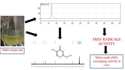 The of kojic acid-rich ethyl acetate extract exhibited potent Nitric Oxide (NO) scavenging activity in vitro