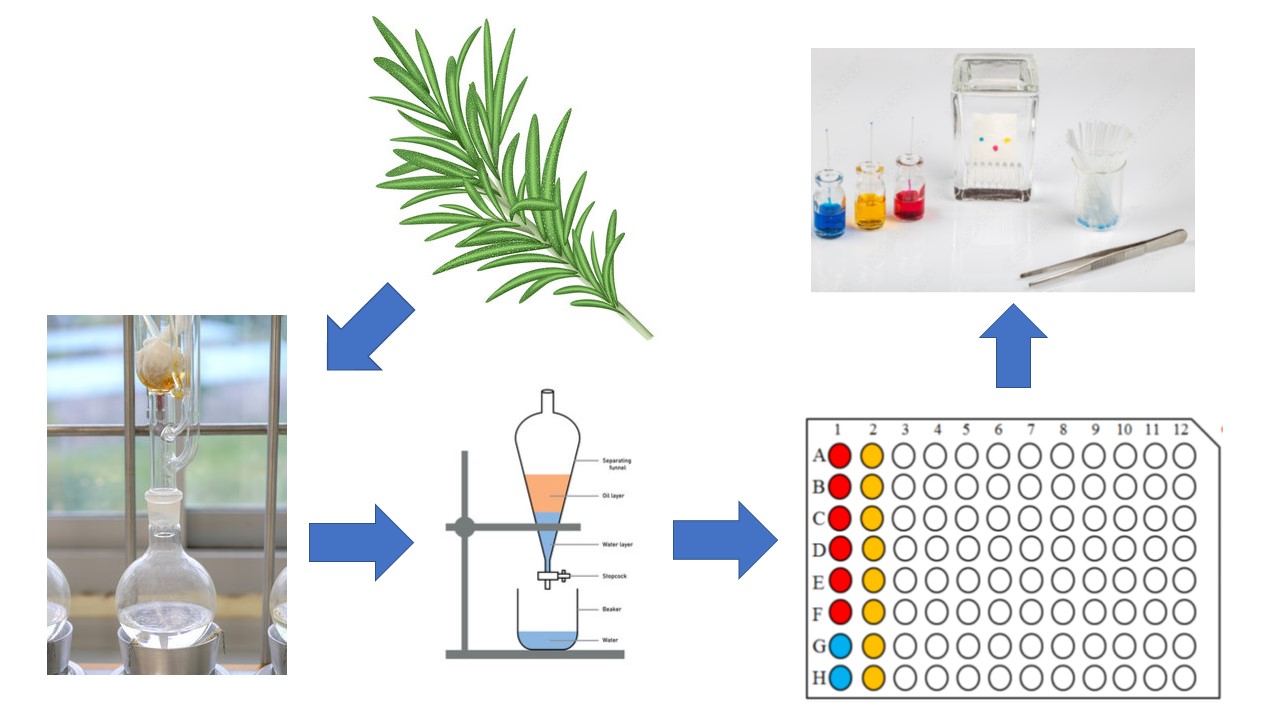 Evaluation process of the antimicrobial activity of the R. officinalis extract