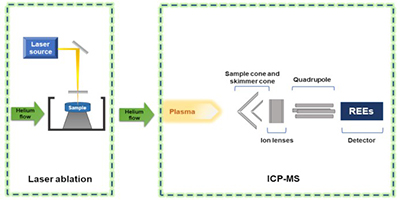 Quantification of Rare Earth Elements in geological samples using the Laser Ablation Inductively Coupled Plasma Mass Spectrometry (LA-ICP-MS) technique.