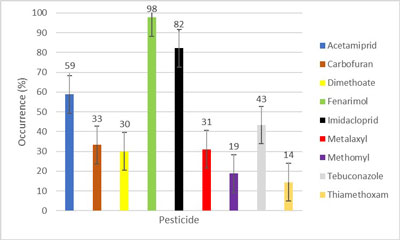 Occurrence of pesticides in soils cultivated with onions in the Vale do Submédio São Francisco, between 2014 and 2019.