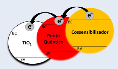 Semiconducting Quantum Dots have been associated with other materials for co-sensitizing solar cells, with electronic conduction cascade effect, which usually leads to an increase in cell efficiency.
