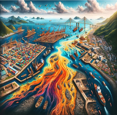 Niterói port complex, one of the most metal-contaminated areas in Guanabara Bay, Rio de Janeiro.